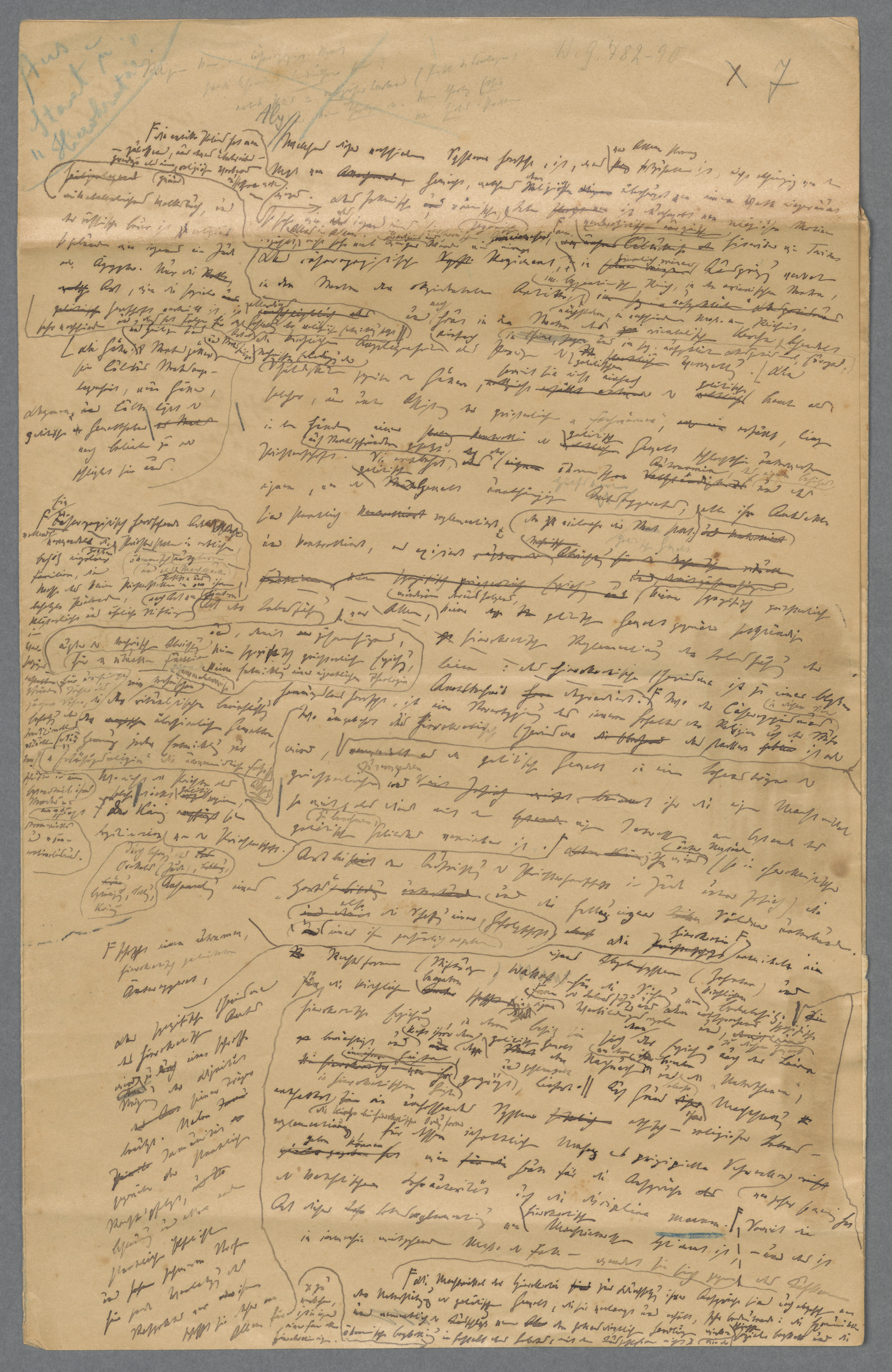 Auf dem ersten Blatt findet sich am oberen linken Rand der handschriftliche Zusatz von dritter Hand „Aus ,Staat u. Hierokratie‘.“ sowie von anderer Hand am rechten oberen Blattrand der Zusatz „W.G. 782–90“.